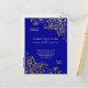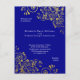 Una invitación a la boda de oro y azul moda. En un fondo azul, este elegante diseño es elegante con sus giros dorados y sus flores. Si buscas una invitación de boda con RSVP para ayudarte a ahorrar dinero, aquí está, no hay necesidad de comprometer el estilo. Al revés pondrás tu dirección de retorno, un breve mensaje personal y darás a tus invitados tu nombre de sitio web. Pueden usarla para RSVP, les encantará y te ahorrará tiempo y dinero. Una fantástica manera de economizar y aún así tener un elegante todo en una sola invitación a la boda. También puede listar un número de teléfono junto con su contacto de correo electrónico si lo desea. Ayude a sus invitados dándoles varias opciones a RSVP. Si necesita ayuda para personalizar esto, póngase en contacto con el diseñador que está más que contento de ayudarle.