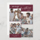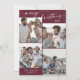 Tarjeta de vacaciones única para Navidades de la Moda Boho en Borgoña. El moderno diseño bohemio-rojo, de color marrón oscuro, presenta una caligrafía rústica sencilla con un estilo único y clásico. Personaliza la parte delantera de las tarjetas de Navidades con el año, el nombre de tu familia y una foto. Incluya un mensaje de saludo de vacaciones personalizado en la parte posterior.