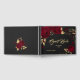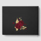bellas y elegantes flores de burdeos con algunas hojas de oro moda libro de invitados negro. Los detalles del purpurina se simulan
