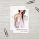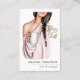Glamorosas tarjetas biz en el salón de belleza con un chica de moda rosa de moda tomando café.