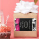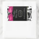 La botella de vino boda bonito favorece a los pegatinas hechos en un patrón de damasco blanco y negro, en la parte superior e inferior, y un negro sólido, en el centro. Un satén rosado de moda con aspecto de arco representa la parte superior del pegatina. Personaliza el texto blanco de la recepción de tu boda.