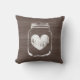 Moda rústica, marrón y blanco, con tarro de barro de albañil, almohada Cute diseño de paneles de grano de madera vintage con el corazón desvanecido en vidrio. Elegante decoración de bodas o decoración de casa para cama, sofá, cocina, salón/dormitorio. Símbolo romántico de amor en frasco de vidrio. También es agradable para bodas de granero al aire libre en verano. Color del fondo del personalizable.