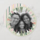 Esta carta de Navidades redondos y llanos de navidad, original y de moda, con una foto, fondo de copo de nieve verde azulado y brillante con acentos de árbol rosa y verde, y rayas de fondo festivas, es la tarjeta personalizada y perfecta para enviar a sus seres queridos esta temporada navideña. Seleccionamos los cómodos tonos de color de Navidades suaves de rosa rubor, coral, verde salvia, dorado y verde bosque para crear un diseño de tarjetas de Navidades alegres, atractivos y cálidos. Esta tarjeta está personalizada con sus bendiciones y saludos de temporada, y su nombre y año de familia. ¡Puedes personalizar la redacción de la parte trasera para decir lo que quieras que sea tuyo! ** Nota FOTOGRAFÍA: Su foto llenará automáticamente el espacio - para moverse, haga clic en el botón azul "editar usando herramienta de diseño", haga clic en la ficha capas de la columna de la izquierda, haga clic en la foto más tarde, luego haga clic en la foto en el diseño y muévase a su gusto, o coja uno de los mangos de esquina y redimensionar. La tarjeta está disponible en varios colores de fondo. Siempre son bienvenidas las solicitudes de diseño personalizado, los colores o las preguntas de la plantilla: haga clic en el "botón del mensaje" o envíe un correo electrónico a contact@figandlilyco.com. Enviando alegres bendiciones a este Navidad y a todo el año (H)