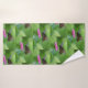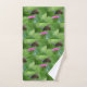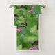Este juego de toallas incluye una mariposa recolectando néctar de una flor rosa de zinnia.