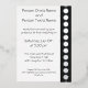 Trae un toque de diversión geeky a tu evento con esta invitación matrimonial con un borde negro anónimo profundo en el lado derecho, decorado con un patrón de 20 dados impresos en Relieve metalizado real. El lado izquierdo de la tarjeta tiene mucho espacio para todos los detalles de tu evento con temática de juegos de mesa con un texto de ejemplo en el lugar que se puede personalizar para que se ajuste a tus necesidades. Un gran dorado d20 termina las cosas en la parte posterior para crear una bonita nota final. Esta invitación coincidirá con cualquier otra Moda de Tabletop en el producto negro para que pueda realizar fácilmente su evento tan coordinado como desee.