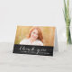 Tarjeta de agradecimiento por la escritura a mano blanca de moda Script de graduación rústica. Diseño de Elke Clarke © Visite nuestra tienda www.zazzle.com/monogramgallery* para más colores y estilos. Añade tu propia foto y texto. Una tipografía blanca simple manuscrita texto de letra manuscrita sobre el fondo de un tablero negro (efecto de foto impreso) con las palabras "Gracias". Reemplace la foto de ejemplo con la suya propia.