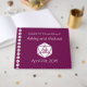 Crea una forma divertida y personalizado para que los invitados de tu boda o evento dejen sus nombres y mensajes para la pareja feliz. Un fondo de vino profundo está decorado con una mueca blanca de veintena en la parte delantera y en la parte trasera. Junto a la columna vertebral, un patrón de d20s crea un acento lindo. La parte delantera tiene un mensaje de ejemplo, nombres y fecha que se pueden personalizar para que este libro sea único para el evento. Consulte la sección Tabletop Moda in Wine en Las capas de diseño: diseños Bodas para otros productos coincidentes, de modo que pueda crear un evento coordinado.