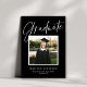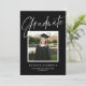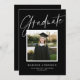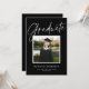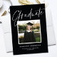 Esta invitación de graduación de moda presenta un fondo negro de moda (personalizable), tipografía elegante y una foto cuadrada. "Graduado", el nombre de su estudiante y todos los demás textos son blancos. Es una moda y un diseño elegante. Puede personalizar de este diseño aún más agregando otra foto o texto adicional al reverso.