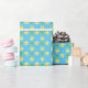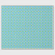 Un rollo de bonito Giftwrap, con un patrón de primroses amarillos y puntos de Polka verdes sobre un fondo turquesa: parte de la colección de 'Primorroses' de Posh & Painterly.