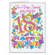 Una tarjeta de cumpleaños 18 muy bonito y floral para una 'Novia muy especial', con un Candy Pink y verde número 18 y la palabra 'Hija de paso en rosado de caramelo', con racimos de flores brillantes y mariposas y 'Feliz Cumpleaños' en todos los colores del arco iris.