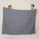 Una manta de moda, con un colorido patrón de flores rojas y rosas y puntos de polka amarillos sobre fondo azul y verde profundo. Este patrón, que forma parte de la colección "Rangoli" de Posh & Painterly, se puede ajustar para que se ajuste a cualquier manta de la flota.