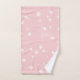 Un conjunto personalizado de toallas de baño monograma que harían un buen regalo para un chica de cumpleaños gitano y dulce de cualquier edad: 1 cumpleaños, 3 cumpleaños, 16 cumpleaños, 21 cumpleaños o 50. También un buen regalo para un boda, una ducha de novia, un aniversario, una ducha de bebé o una fiesta de soltera. El fondo rosado texturado tiene un patrón floral: daisies dibujados a mano rociaron. El diseño tiene un estilo rústico, rústico, rústico y casero. El texto: el nombre está escrito en un color dorado con un guión moderno de estilo con letras a mano. Plantilla para el nombre y el monograma. Buen regalo de Navidades para alguien que ama las flores, las margaritas, el rosa, los diseños florales, los patrones botánicos, el verano o la primavera.
