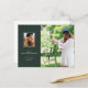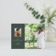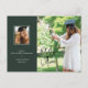 Esta invitación de graduación presenta un elegante fondo verde oscuro con una gran foto y una fotografía más pequeña. Los detalles incluyen el grado de graduado, especialista, nombre de la escuela y año de graduación con el nombre del graduado resaltado en un tipo de letra manuscrita con "firma". Esta invitación de graduación de postales está configurada para un envío fácil.