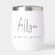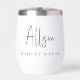 Tumbler de vino termal de moda para tu criada de honor, matrona de honor, damas de honor, u otros miembros de tu fiesta nupcial para celebrar en tu ducha de novia, fiesta de soltera, recepción y otros eventos bodas. Personalice con su nombre en un delgado guión moderno de caligrafía y su papel en la elegante tipografía serif.
