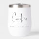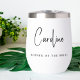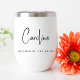 Tumbler termal de moda para las madres de la novia y el novio para celebrar y brindar por la feliz pareja en la fiesta de compromiso, cena de ensayo, recepción de boda, etc. Personalice con su nombre en un guión moderno de caligrafía y su título en una elegante tipografía serif.