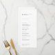 Los menús, sencillos y modernos, son el complemento perfecto para los ambientes de la recepción. El encabezado del guión manuscrito combinado con las fuentes serif y sans-serif da a estos menús un aspecto clásico y limpio. Personalice los menús con los elementos del menú boda y el nombre de la pareja y la fecha boda en la parte inferior. Y puede "Hacer clic para hacer más personalizar" en la pestaña Personalización si necesita ajustar el espaciado o realizar cambios más avanzados en el diseño. Si te gusta este diseño de menú, revisa nuestra colección de guiones modernos para todas las papelería coincidentes del día de la boda.