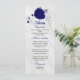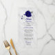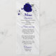 bellas flores azules reales y hojas grises plateadas elegante menú de bodas.
