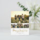 Crea tu propia postal de vacaciones con nuestras plantillas fáciles de usar! Con un collage de 4 fotos para que puedas reemplazarlo con tus fotos. "Feliz Navidad" se muestra en un guión falso de Relieve metalizado de oro de moda con el nombre y año de tu familia en una tipografía de estilo minimalista.