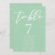 Esta tarjeta de mesa de boda verde suave de menta incluye tipografía blanca de moda de los nombres de sus invitados para una dulce ceremonia al aire libre de primavera. Sencillo y elegante, sobrio y en una tranquila y sólida decoración verde pastel para un recinto ajardinado.
