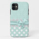 Agradable funda iPhone 5 verde menta y blanco, con un diseño verde menta en damasco verde, en la parte superior, y un verde menta con el patrón de puntos de polka blanco, en la parte inferior. Los gráficos de una banda de encaje blanco y una cinta verde menta y un arco recorren el medio entre los dos fondos. Personalizar para agregar su propio texto. Excelente manera de lucir elegante y proteger su dispositivo electrónico al mismo tiempo.