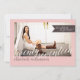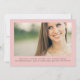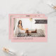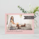 Un diseño fresco, limpio y moderno cuenta con espacios en la parte delantera y trasera para fotos de gran tamaño de tu graduado. En rosa suave y rubio con acentos marrones mocha y encantadora letra cursiva a mano 'veintisiete' invita a la familia y amigos a su celebración con estilo. Un aspecto contemporáneo perfecto para tu joven graduado. Se muestra como una invitación a una fiesta de graduación, pero el texto puede ser personalizado para cambiar fácilmente a una invitación.