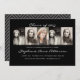 Espacio para cinco fotos de tu graduado, este diseño es una presentación de moda de simplicidad y estilo. En la parte delantera se muestra un texto blanco sobre un fondo negro, con un estilo de chevron a la moda que combina negro y gris en la parte trasera.