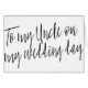 Un estilo moderno, de moda y caligrafía de bonito "A mi tío en el día de mi boda", perfecto para regalarle en su día de bodas.