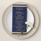 Elegante y moderno programa de Bodas de lujo en azul marino y en oro falso.Este elegante programa de bodas de moda azul marino y moderno es perfecto para cualquier chica de cristal elegante y sofisticado. Este diseño es perfecto para un fiesta moderno y elegante. Personalizar este diseño con su propio mensaje e información personalizada. Todos los diseños están impresos.