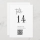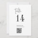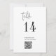 Este número de tabla de códigos QR en blanco y negro de moda es perfecto para un boda sencillo. El minimalista diseño boho presenta una tipografía bohemia rústica única y elegante en blanco y negro minimalista. La tarjeta se imprime en la parte delantera y trasera (doble cara). Utilice el código de barras para enlazar a su menú, o un sitio web o medio social donde sus invitados pueden compartir fotos. Agregue cada número de tabla que necesite a su carrito individualmente.