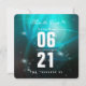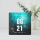 Guarda la tarjeta Date para la suite boda Deep Sea Aqua. Rellena el día de la semana, el mes y el día en números de dos dígitos, y el año se detalla al frente. Los nombres de la pareja boda van por detrás.