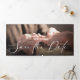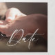 Este diseño hace una moda y una declaración moderna. Cuenta con una gran foto horizontal y un hermoso guión, que abarca todo el exterior de esta tarjeta triple. El saludo al frente simplemente dice "Salva la Fecha". Cuando abras la tarjeta por completo, verás una foto a la izquierda, una foto a la derecha, y en el medio, tu texto personal. El diseño multifoto te permite subir un total de tres de tus fotos favoritas. *CONSEJO DE DISEÑO: Asegúrate de elegir "LLENAR" para que tus fotos lleguen hasta el borde. Póngase en contacto con nosotros para obtener ayuda sobre el diseño a través de Zazzle Chat o envíe un correo electrónico a stephanyanddany@gmail.com. Responderemos en 12 horas.