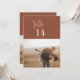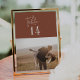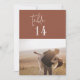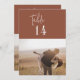 Estos modernos números de tabla de fotos de terracota de moda 5x7 son perfectos para un boda sencillo. El diseño del boho del desierto presenta una tipografía bohemia rústica única y elegante en un color de roya naranja quemado. La tarjeta se imprime en la parte delantera y trasera (doble cara). Personaliza cada tarjeta con una foto diferente de compromiso o tema de viaje. Agregue cada número de tabla que necesite a su carrito individualmente.