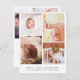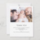 Esta tarjeta de agradecimiento de la foto eterna de la moda es ideal para cualquiera que quiera agradecer a los invitados en su ducha de bebé por los regalos, el amor y el apoyo que han recibido y para presentar a su nuevo miembro de la familia. El diseño moderno y elegante tiene un estilo minimalista y cuenta con cuatro fotos de personalizable colocadas en el collage y una tipografía simple y elegante para su información. Al contrario, hay una quinta foto y un mensaje de agradecimiento a tu personalizable con tus nombres. Utilice el botón "personalizar" para reemplazar fotos y editar texto.