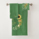 Elegante casa de campo vintage rústico elegante acuarela floral y verde toallas de baño de madera con flores coronadas por flores de flores de flores con follaje sabio. ++++++++ Fácil de personalizar con el nombre de su familia guión amarillo monograma de la letra inicial, texto y su nombre.