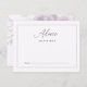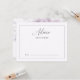 Hermosas flores de color púrpura pastel y follaje con guión de caligrafía de bonito sobre apenas ahí consejos de fondo morado para la tarjeta de novia.