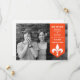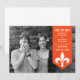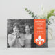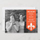 Moda moderna y elegante Flourish Banner Photo Save the Date Announement con un cartel de flecha en naranja adornado con un simple adorno de flores de lis. Esta elegante invitación para guardar la fecha es perfecta para anunciar su próximo boda. Fácil de personalizar, simplemente agrega tu propia foto y detalles del boda. Haga clic en "Personalizar" para buscar opciones de personalización adicionales.