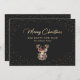 Tarjeta de Navidad personalizado negra y dorada con una silueta de reno dorado y una viñeta de nieve. Un falso saludo de vacaciones con guión de Relieve metalizado dorado añade un aspecto más festivo a esta tarjeta de vacaciones. Personalice fácilmente esta tarjeta negra de vacaciones con su nombre familiar y texto o personalizar para crear una hermosa tarjeta de vacaciones de negocios. El efecto Relieve metalizado dorado sólo se simula en las obras de arte. Hay más opciones de color disponibles.
