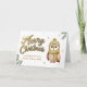 Esta adorable tarjeta de Feliz Navidad presenta a un búho lindo que lleva puesto un miedo navideño junto a un falso guión de oro purpurina y su mensaje personalizado debajo. Las hojas de pino de bonito se extienden por las esquinas de esta moderna tarjeta de dibujo de animales de bosque, llena de extravagantes copos de nieve.