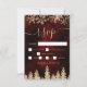 Es hora de celebrar su boda invernal maravilloso, con este lujoso purpurina de moda dorado con chispas de nieve y purpurina de oro amarillo en un elegante fondo de color rojo burdeos, con una moderna tipografía de escritura fría. Tarjeta rsvp perfecta para tu boda invernal de wonderland.