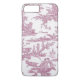 El encantador funda iPhone 7 Plus hizo un ilustracion vintage con toiles rojos y blancos franceses, mostrando cada día la vida en una granja francesa. el texto del guión de color violeta está listo para personalizarse para usted o como una gran idea de regalo. Una forma elegante de proteger tu smartphone y lucir elegante también.
