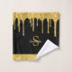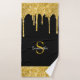 Disfrute de este elegante diseño con su nombre y monograma con una moda y un purpurina dorado brillante goteando sobre un fondo negro.
