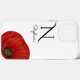 Un aspecto moderno y de moda con una sola amapola roja. En un fondo blanco con texto negro. Lo personalizará con su monograma inicial de una sola letra. Use todas las tapas para esto. Su nombre de pila estará en una elegante letra cursiva.