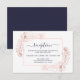 Elegante tarjeta de recepción matrimonial con un diseño botánico de rosa dorado con contorno floral, la parte trasera de la tarjeta está en una moda azul oscuro. Simplemente agregue los detalles de su boda. Si necesita ayuda o productos que coincidan, por favor contáctenos a través de nuestra tienda. ¡Estamos encantados de ayudarle a hacer de su boda el día más hermoso!
