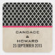 Elegantes y modernas pegatinas de Moda Quatrefoil Wedding con un fondo de diseño marroquí, un fondo de papel vintage y un par de delgadas rayas de magenta. Estos elegantes stickers de boda son fáciles de personalizar con los detalles de su boda. Haga clic en "Personalizar" para encontrar más opciones de personalización.