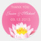 Moda Rosa Radio Lotus Gracias Pegatina. Un fondo radial rosa de moda y elegante con una flor rosa de loto / nenúfares en la esquina. Los bordes superior e inferior están adornados con un patrón de chevron blanco. Encontrar RSVP coincidente, guardar las fechas, sellos, etiquetas, números de tabla y mucho más en la tienda principal o enviarme un correo electrónico para un diseño personalizado. Sus invitaciones y invitaciones de boda tendrán un aspecto profesional fresco en nuestro papel de alta calidad. Cada invitación de boda viene con un sobre blanco. También se pueden solicitar sobres adicionales de correspondencia. Si no encuentra lo que está buscando, no dude en ponerse en contacto con nosotros, le haremos llegar su diseño tan pronto como las 24 horas