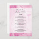 plantilla de menú boda de pétalos de flores de rosa rosa de moda. Elegante plantilla con elegante tipografía y fondo fotográfico. Hermosas plantillas para parejas que se casen pronto. Parte de un conjunto de colección asequible con decoraciones y papel a juego. Personaliza con nombres de novia y novio. diseño de bonito con imagen de fondo suave.