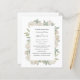 Un marco de rosas rústicos blancos y marfil con hojas de color verde salado suave y bordeando los detalles de tu boda con una fuente gris clásica. Al revés una plantilla para insertar la lista de miembros de su fiesta de bodas (oficial, padres de novios, criada de honor, hombre de primera, dama de honor, padrino, padrinos, chica de flores y portador de anillo) Los tonos sucios mantienen el aspecto sencillo y mínimo perfecto para boho al aire libre, leña y eventos de jardín de primavera o verano. Estos programas son perfectos para una celebración donde la belleza de las flores silvestres se encuentra con la gracia de la simplicidad, creando una sensación que es única tuya. Prepárate para hacer una declaración y fijar el tono para un boda tan inolvidable como tu historia de amor