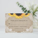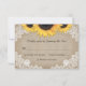 Tarjetas RSVP de boda rústica personalizado con girasoles, burlap, encaje y madera de granero. Diseño perfecto de tarjetas para complementar su rústico campo, o fiesta de bodas en granero inspirada en flores de girasol. Artículos de juego disponibles para complementar estas rústicas tarjetas RSVP de boda de moda.