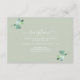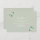 Elegante y simple tarjeta de recepción de boda con escritura de moda con letras blancas y un toque elegante de follaje eucalipto verde sobre un fondo verde pastel. Sólo tienes que añadir los detalles de la recepción de tu boda. Diseñado exclusivamente para usted por Happy Dolphin Studio. Si necesita ayuda o productos coincidentes, por favor contáctenos en happydolphinstudio@outlook.com. ¡Estamos encantados de ayudarle a hacer de su boda el día más hermoso!