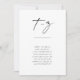 ¡Estas sencillas y elegantes cartas de asignación de asientos serán sorprendentes para tu boda u otro evento! Facilite a sus huéspedes la búsqueda del número de su mesa organizando sus nombres por orden alfabético. Con una fuente sans-serif limpia y sencilla con un tipo de letra de acento manuscrito. Personaliza el cartel con todos los nombres de invitados que empiezan con las letras T-Z. Si le gusta este diseño, no deje de visitar el resto de las tarjetas alfabéticas de la colección de guiones modernos.